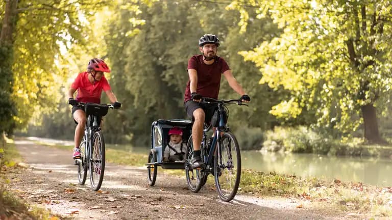 Children's trailers are great ways to share family time by bike!